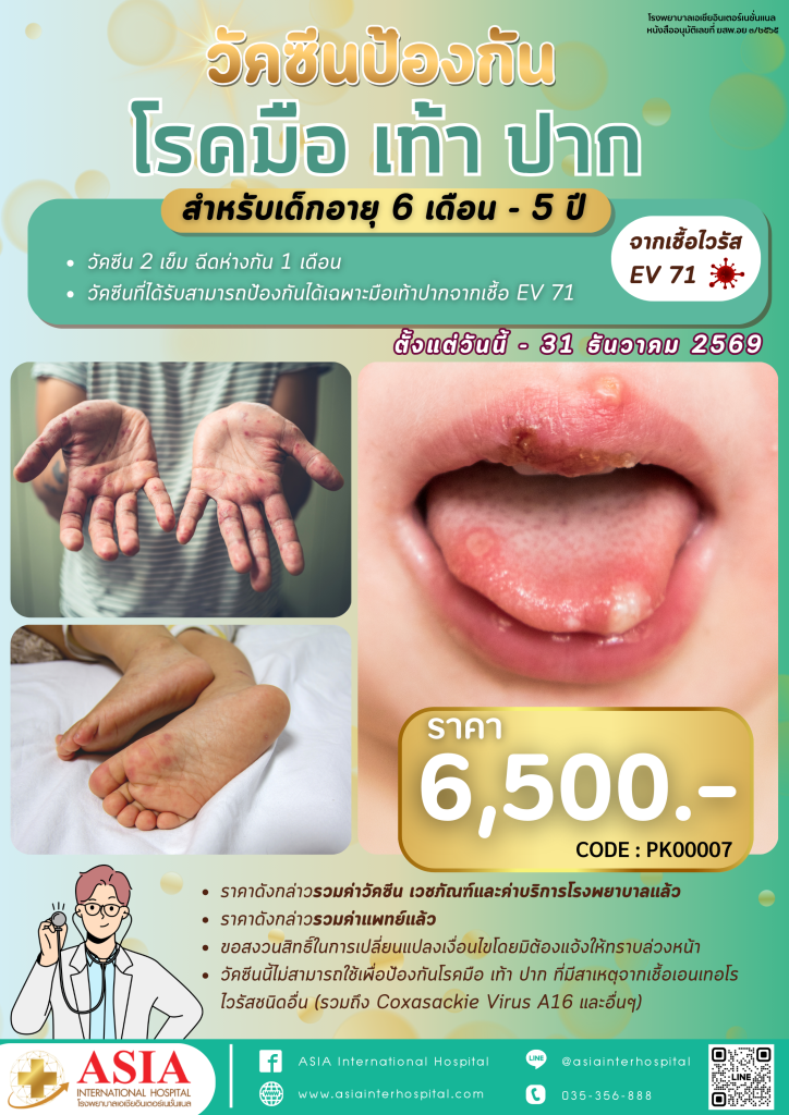 แพ็กเกจนี้เป็นวัคซีนที่เน้นป้องกันโรคมือเท้าปากจากเชื้อ EV71 (ตามรายละเอียดในโปสเตอร์โปรโมชัน)