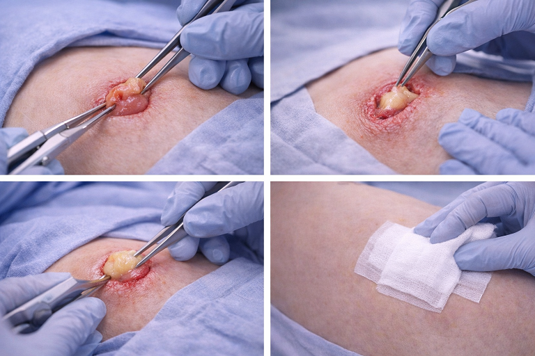 แพทย์จะใช้ยาชาเพื่อลดความเจ็บ และเลือกวิธีที่เหมาะสมกับตำแหน่งก้อน
